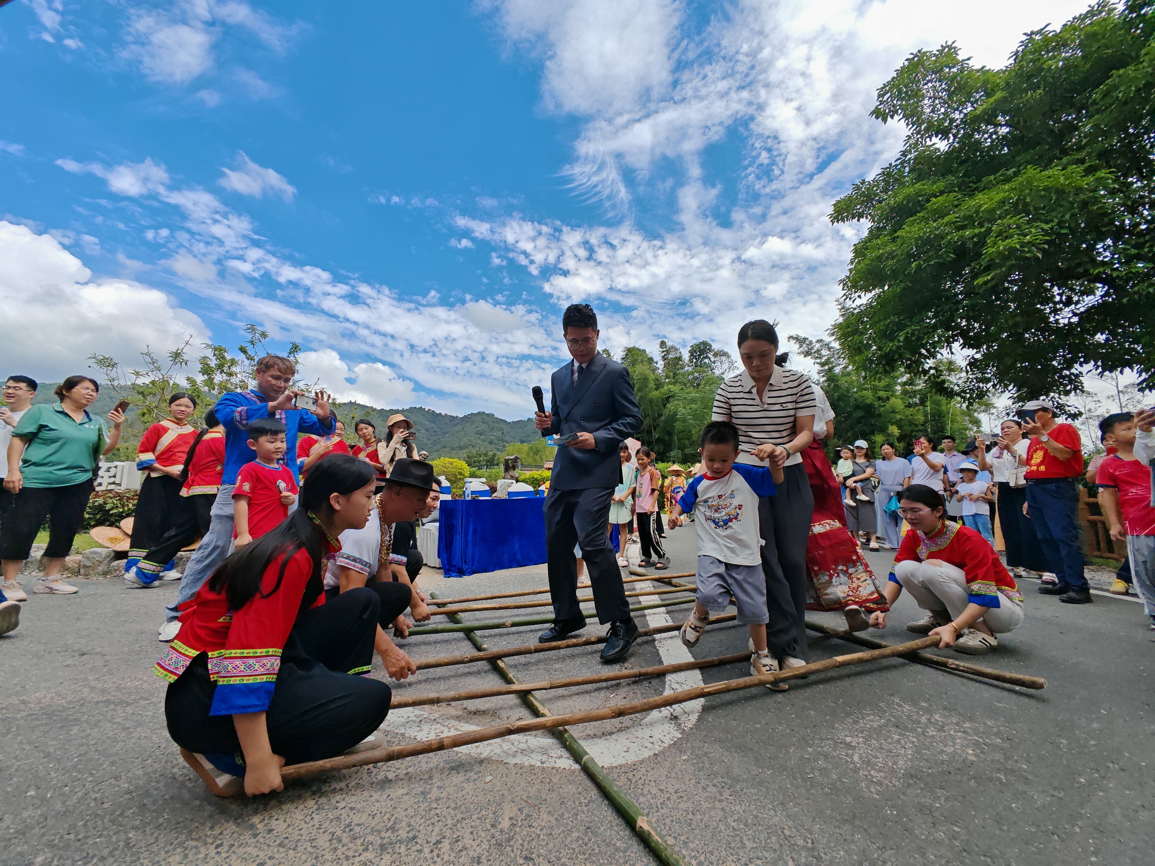 龙门县龙城街道城西村的百果里果旅综合体内,一场“丰收大片”汇成欢乐的海洋。龙门舞火狗非遗表演中,舞者步伐灵动,传递着农耕文明的厚重底蕴;龙石头醒狮队腾挪跳跃,将丰收的喜悦演绎为生动的肢体语言,引来观众阵阵喝彩。农特产品市集上,来自惠州各地的特产琳琅满目,令人垂涎;孩子们乘着小火车穿梭于绿意之间,清脆的笑声在山谷中回荡……